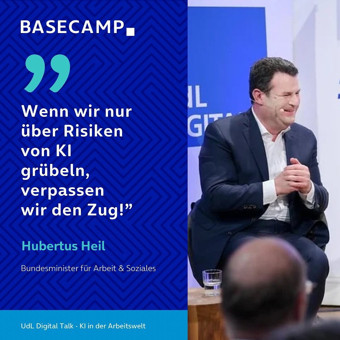 Generative Künstliche Intelligenz ist dabei, unsere Arbeitswelt in kurzer Zeit drastisch zu verändern. Aber wie gut sind wir in Deutschland darauf vorbereitet? Und was können Politik und Gesellschaft dafür tun, den revolutionären Wandel der Arbeit möglichst positiv zu gestalten? Darüber diskutierten Hubertus Heil, Bundesminister für Arbeit und Soziales, und Anja Hendel (öffnet in neuem Tab), Managing Director bei diconium, beim UdL Digital Talk im BASECAMP.
