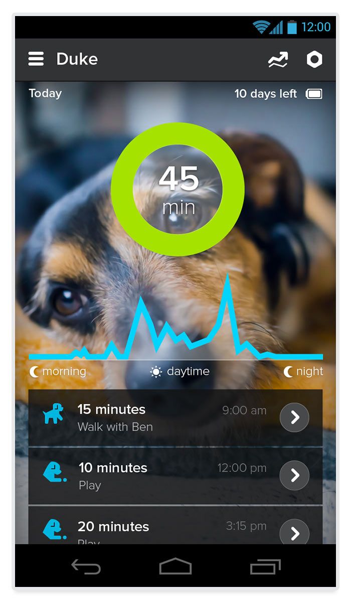 Der Trend zu Fitnessarmbändern reißt nicht ab und immer mehr Hobbysportler nutzen die smarten Armbänder, um ihren sportlichen Ehrgeiz mit ihren Facebook-Freunden zu teilen. Um die Fitness seines Hundes ebenfalls im Auge zu behalten, bestellt man sich den Activity-Tracker zum Beispiel von Whistle. Einfach den Tracker an dem Halsband befestigen und schon können Herrchen und Frauchchen Schritte, Ruhephasen und Schnelligkeit des Tieres mitverfolgen. Natürlich über die entsprechende Smartphone-App. Bewegt sich der Hund zu wenig, weil er lieber den ganzen Tag vor DogTV sitzt, wird dies ebenfalls an den Besitzer kommuniziert. Da hilft nur noch eins: Ab aufs Laufband!