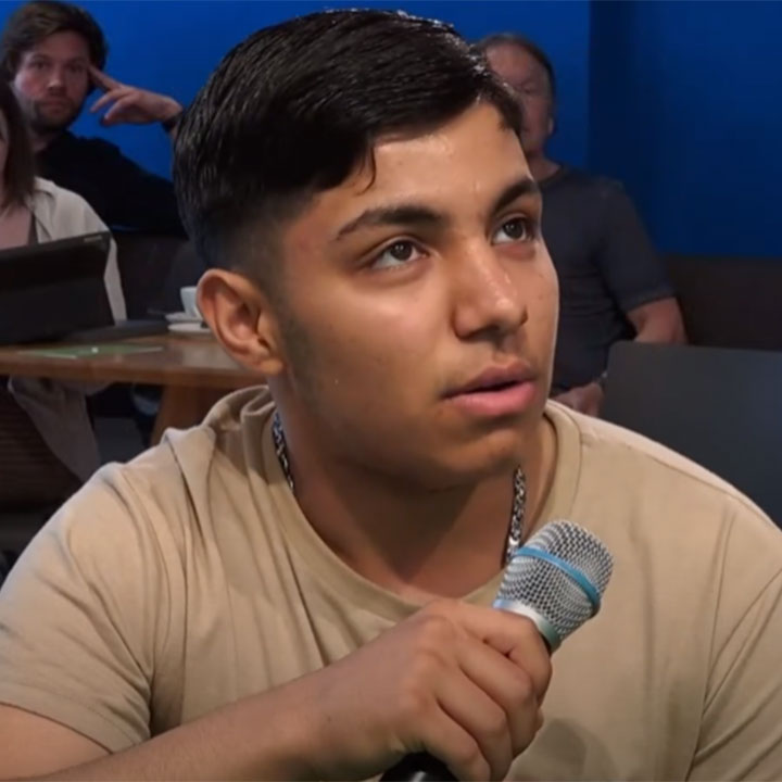 Der Krieg in Gaza war die erste Frage eines Jugendlichen, nachdem der freie Platz am Tisch besetzt werden konnte. Der junge Mann wollte wissen, warum trotz der vielen Toten in Gaza weiterhin deutsche Waffen an Israel geliefert würden. Die deutsche Mahnung zum Frieden sei doch nur gespielt. Funke, Al-Halak und Reichinnek verwiesen auf den Beginn des Konflikts mit dem Angriff der Hamas, kritisierten aber auch das Vorgehen der Regierung Benjamin Netanjahus. „Voraussetzung für einen Frieden in Gaza ist, dass es den Menschen in Gaza besser geht und dass die Israelis keine Angst mehr vor den Waffen der Hamas haben müssen“, sagte Funke. „Es braucht den Willen beider Seiten.“