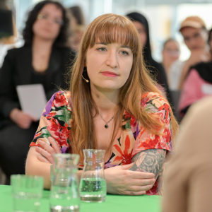 Nicht alle Jugendlichen trauten sich an den Tisch. Einige von ihnen warteten das Ende der Veranstaltung ab und hatten im persönlichen Gespräch mit den Politiker:innen die Gelegenheit, ihre Fragen zu stellen. Eine Gruppe von Mädchen wollte vor allem über den § 218 StGB (Abtreibungsgesetz) sprechen. Andere wollten von den Politiker:innen wissen, warum einige in der Politik Narrative rechter Parteien übernehmen, um Wähler:innen zu gewinnen.