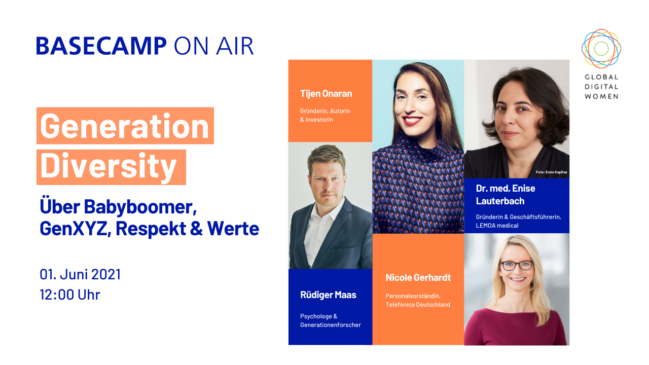 01. Juni 2021 BASECAMP ON AIR | Diversität | Generationsvielfalt BASECAMP ON AIR: Generation Diversity – Über Babyboomer, GenXYZ, Respekt & Werte