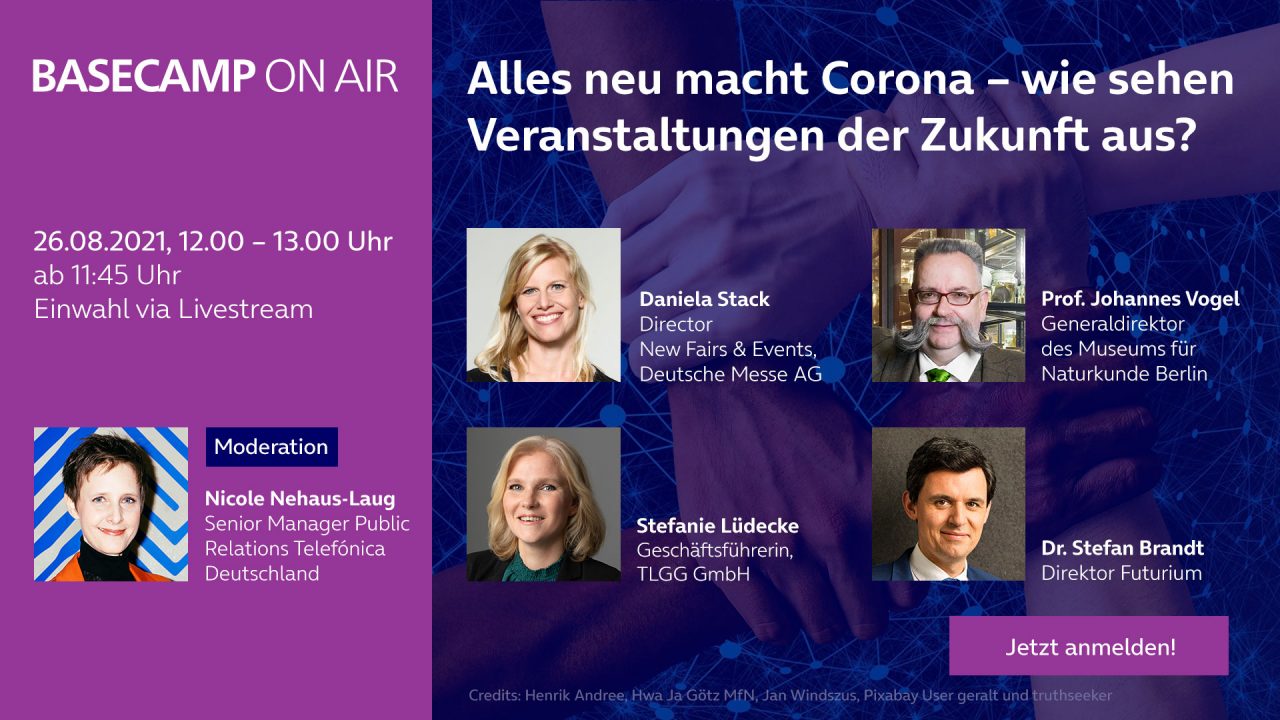 26. Aug. 2021 BASECAMP ON AIR | Corona BASECAMP ON AIR: Alles neu macht Corona – wie sehen Veranstaltungen der Zukunft aus?