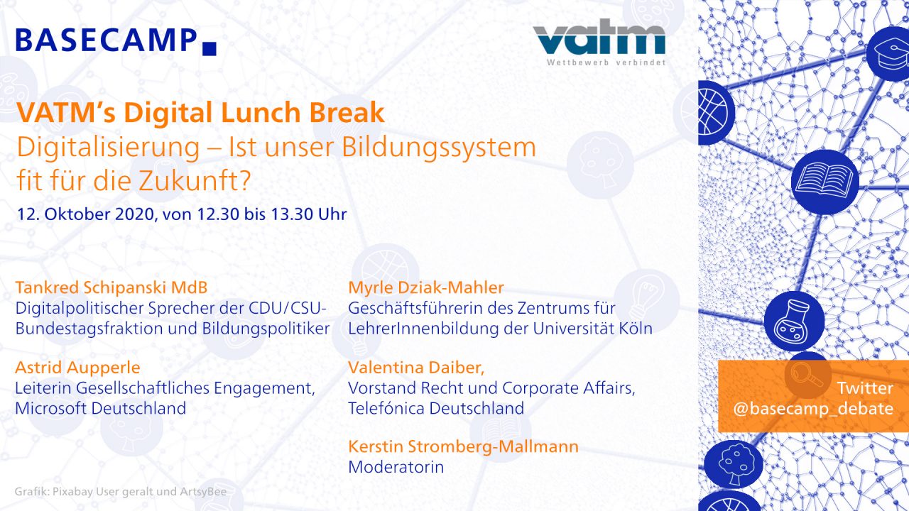 12. Okt. 2020 Bildung | Corona-Krise | Digitale Bildung VATM’s Digital Lunch Break: Digitalisierung – Ist unser Bildungssystem fit für die Zukunft?