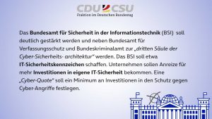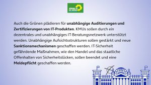 Durch die ständig zunehmende Digitalisierung von Diensten und Abläufen, sowohl im Privaten, als auch in der Wirtschaft und auf staatlicher Ebene, wird die Frage nach IT-Sicherheit immer relevanter. Wie sollen Bürger:innen, Staat und Wirtschaft am besten vor Cyber-Angriffen geschützt, welche Behörden damit beauftragt werden? Hier die Forderungen und Vorschläge der einzelnen Parteien im Überblick: