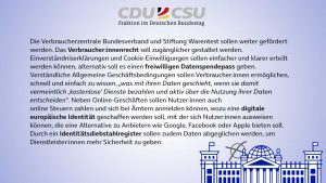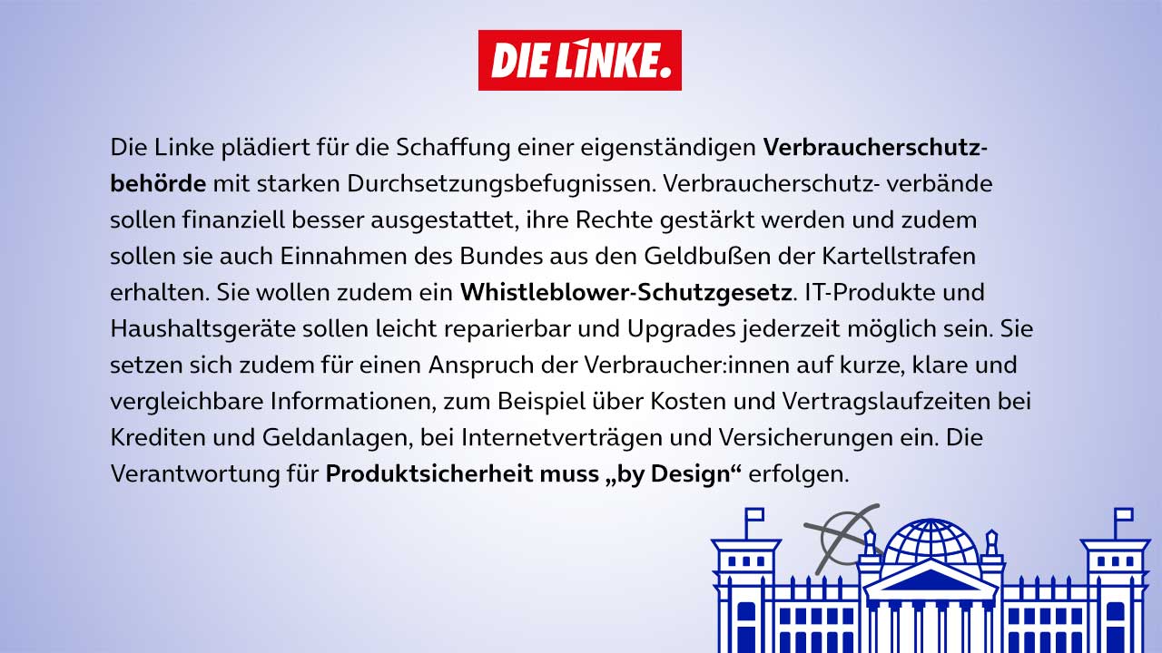 Ähnlich wie bei der IT-Sicherheit verhält es sich in Sachen Verbraucherschutz. Auch hier werfen digitale Dienste und Abläufe neue Fragen auf, die Verbraucher:innen verunsichern und auf die die Politik zeitgemäße Antworten geben muss. Es ist daher nicht überraschend, dass die Parteien diesem Thema große Aufmerksamkeit in ihren Programmen schenken – und auch hier wieder unterschiedliche Ansätze formulieren: