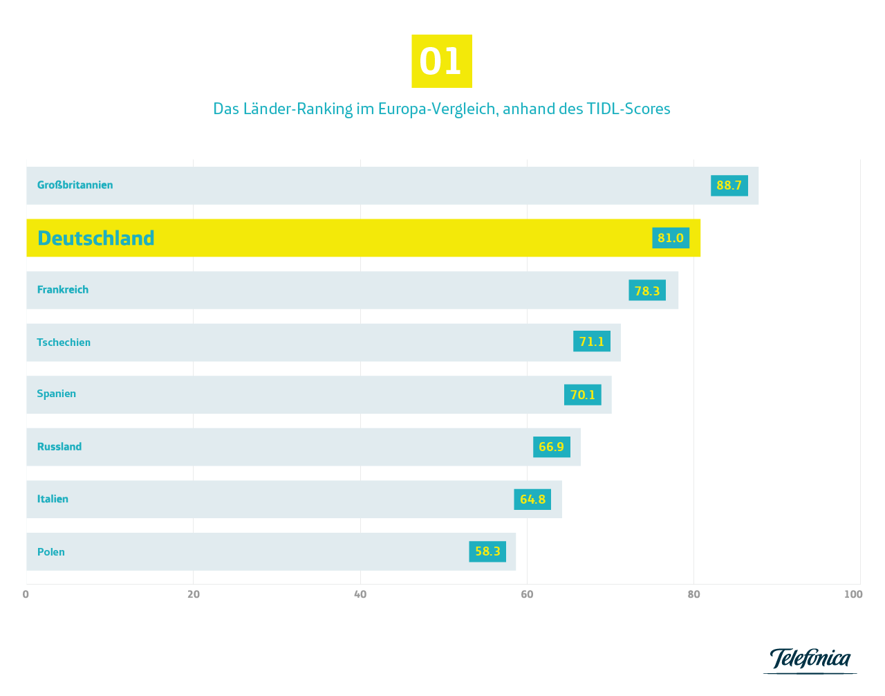 Ausgehend von der Erkenntnis, dass Deutschland bei der Digitalisierung bereits in vielen Bereichen gut aufgestellt ist, zeigt der TIDL aber ebenso, dass das Potential noch nicht voll ausgeschöpft ist; und das auch im Vergleich zu anderen Ländern und ihrem Digitalisierungsfortschritt.
