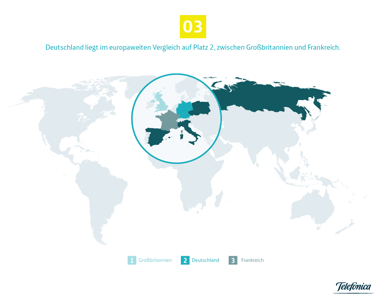 Umfassender als jede bisherige Arbeit, erfasst der TIDL, dass Deutschland unter den insgesamt 34 untersuchten Ländern Rang 5 im Digitalisierungs-Ranking einnimmt. Im Europäischen Vergleich Platz 2 – besser als Länder wie Frankreich, Spanien, Italien oder Polen.