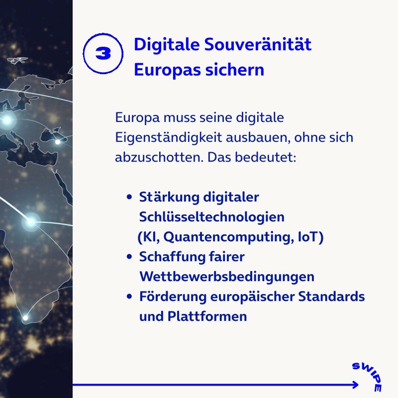 Sich auf die Wettbewerbsfähigkeit zu konzentrieren bedeutet, Innovationen in neuen Technologien – wie fortgeschrittene Konnektivität, KI, Cloud Computing oder Quantencomputing – zu unterstützen, ein günstiges Investitionsumfeld zu schaffen, die Voraussetzungen für eine effektive Skalierung der Unternehmen zu generieren, gleiche Wettbewerbsbedingungen zu fördern und ein widerstandsfähiges digitales Ökosystem aufzubauen. In der Praxis bedeutet dies mehr Agilität, mehr Innovation, mehr Investitionen, mehr Wachstum, mehr Ausgewogenheit und mehr Sicherheit.