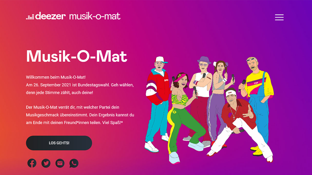 Für Aufsehen hat in den letzten Wochen auch ein Launch des Musik-Streamingdienstes Deezer gesorgt. Denn mit dessen Tool Musik-O-Mat können Interessierte ab sofort feststellen, wie nahe der eigene Musikgeschmack denen der Parteien steht. Die Auswertung erfolgt anhand einer Umfrage unter Parteianhänger:innen sowie den Antworten der Parteien. Ein Spoiler: Beyoncé steht gleichermaßen bei der FDP und den Grünen hoch im Kurs.