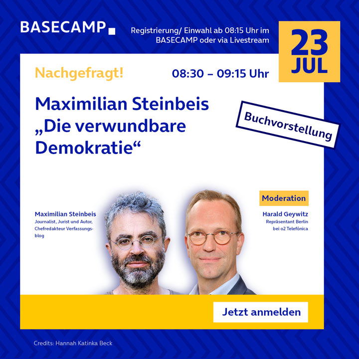 Schon heute freuen wir uns, Sie sowohl digital im BASECAMP ON AIR oder auch direkt vor Ort in unserem schönen BASECAMP in Berlin-Mitte begrüßen zu dürfen!