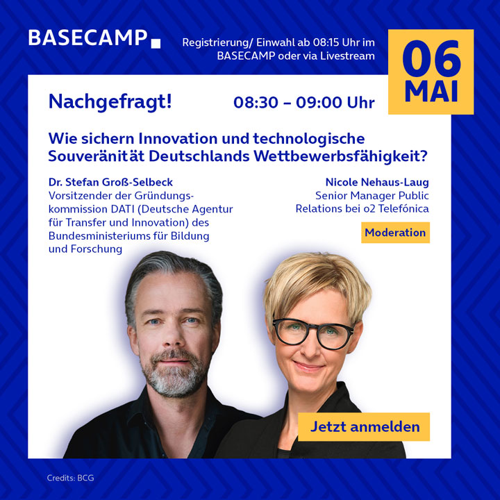 Schon heute freuen wir uns, Sie sowohl digital im BASECAMP ON AIR oder auch direkt vor Ort in unserem schönen BASECAMP in Berlin-Mitte begrüßen zu dürfen!