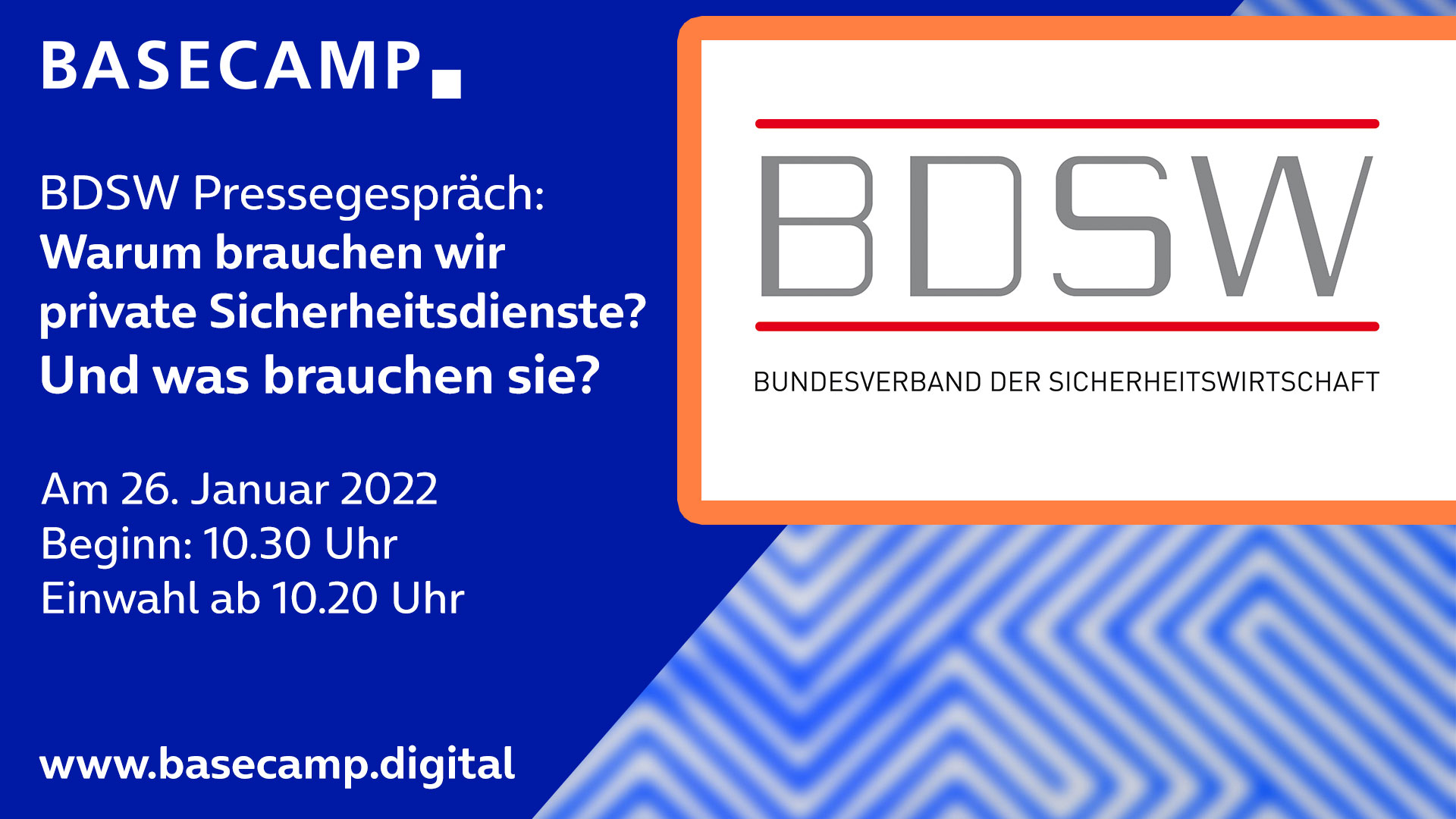 Für die Teilnahme am Pressegespräch bitten wir um schriftliche Anmeldung bis spätestens 25.01.2022 unter zoeller@bdsw.de.