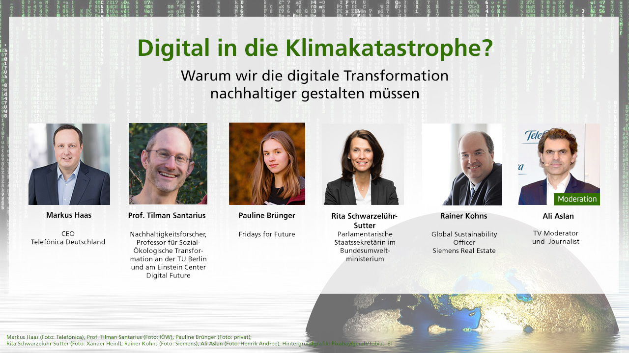 Der Digitalisierung kommt in dieser Debatte eine gespaltene Rolle zu. Einerseits können digitale Technologien bei der Bewältigung schwieriger Aufgaben unserer Zeit helfen. Durch ihre immer größere Bedeutung im Alltag der Menschen und im Wirtschaftsleben treibt die Digitalisierung andererseits den Energie- und Ressourcenverbrauch enorm an. Wir brauchen immer leistungsfähigere Rechenzentren, um soziale Medien, vernetzte Maschinen, künstliche Intelligenzen und den insgesamt immer größeren Datenstrom zu ermöglichen. Wussten Sie, dass der Digitalsektor mehr Treibhausgas-Emissionen erzeugt, als der zivile Luftverkehr?