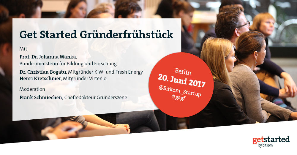 Diese und weitere Fragen werden beim nächsten Get Started Gründerfrühstück thematisiert. Neben Prof. Dr. Johanna Wanka (Bundesministerin für Bildung und Forschung) sind auch KIWI.KI-Gründer Christian Bogatu und Henri Kretschmer, Gründer von Virtenio, mit dabei. Frank Schmiechen, Chefredakteur von Gründerszene, wird das Gründerfrühstück moderieren.