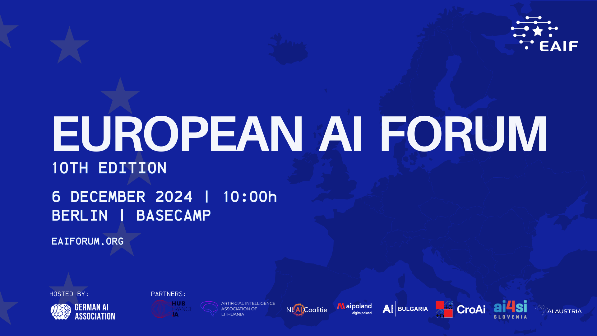 Das European AI Forum feiert am 6. Dezember 2024 seine 10. Ausgabe in Berlin. Die Konferenz, die 2020 als Online-Initiative nationaler KI-Verbände begann, ist heute ein zentraler Knotenpunkt für das europäische KI-Ökosystem. Gastgeber ist der KI Bundesverband, der zur Jubiläumsausgabe führende Expert:innen, politische Entscheidungsträger:innen und visionäre Unternehmer:innen aus der ganzen EU zusammenbringt.