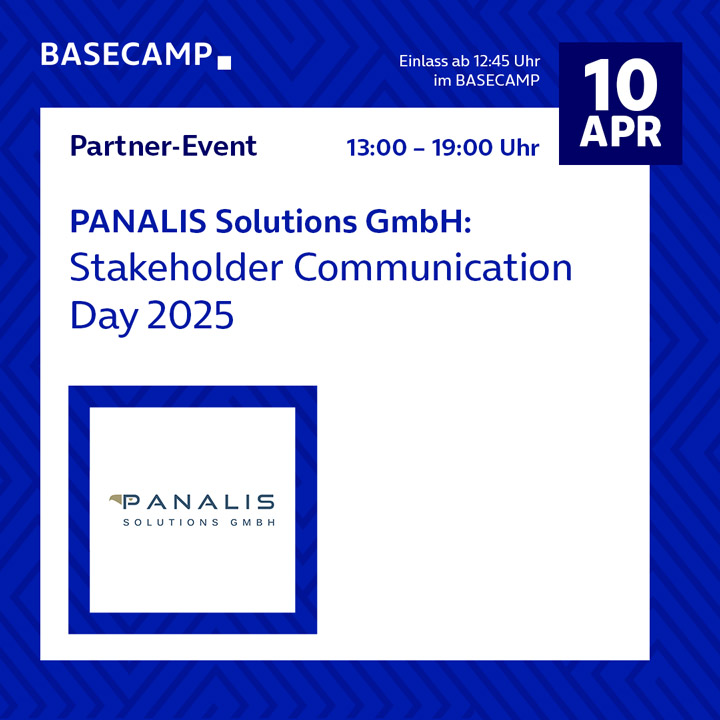Wir weisen darauf hin, dass bei unseren öffentlichen Veranstaltungen auch Bild- und Tonmaterial in Form von Fotos oder Videoaufzeichnungen durch von uns beauftragte oder akkreditierte Personen und Dienstleister erstellt wird. Die Aufnahmen werden für die Event-Dokumentation und Event- Kommunikation auf den Social-Media-Kanälen des BASECAMP genutzt. Sie haben das Recht auf Information und weitere Betroffenenrechte. Informationen zu unseren Datenverarbeitungen sowie Ihren Betroffenenrechten finden Sie hier.