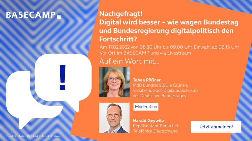 Wir freuen uns Sie sowohl digital im BASECAMP ON AIR oder auch direkt vor Ort in unserem schönen BASECAMP in Berlin Mitte unter Einhaltung der aktuellen Hygienebestimmungen begrüßen zu dürfen!