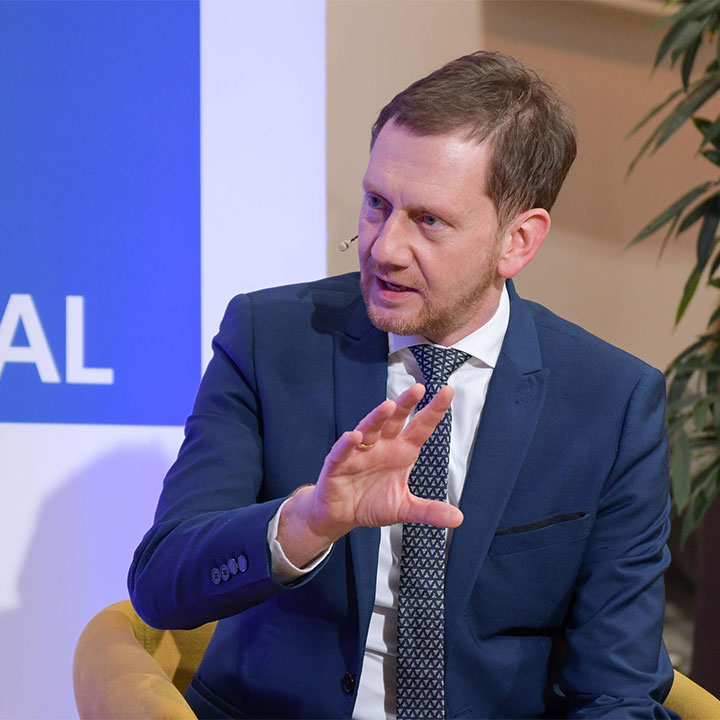 Bei der Frage, wie ländliche Räume gegenüber urbanen Zentren noch attraktiver gemacht werden können, betonte Kretschmer mit Blick auf sein eigenes Bundesland, das Sachsen bereits „sexy“ sei, wenn es um die Aspekte Kultur, Landschaft und Verkehrsanbindung geht. Zudem gebe es die Möglichkeit von sächsischen Zoom-Towns, in denen auch jenseits großer urbaner Räume digital gearbeitet werden kann.