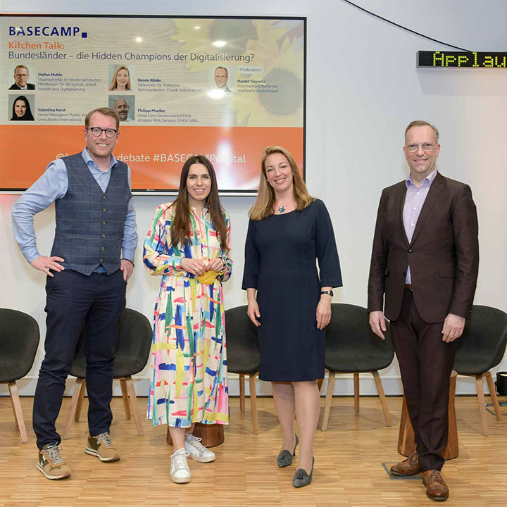 Wir sind gespannt, wie die vier hier vorgestellten Abgeordneten bei der BASECAMP FishBowl (öffnet in neuem Tab) am 11. April auf ihre Rolle als junge MdB schauen und wie sie zur Digitalisierung in Deutschland stehen. Kommen Sie gern vorbei oder schalten sich digital dazu!
