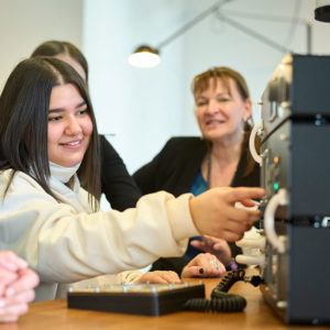In Workshops konnten sich die Schülerinnen noch näher mit den Themen der drei vorgestellten Berufe auseinandersetzen, indem sie von den Expertinnen gezeigt bekamen, wie man die Steuerung für ein Smart Home programmiert, wie eine Social Media Analyse durchgeführt wird und wie die am Vortag konfigurierte 5G-Funkstation funktioniert. Zusätzlich durften sie nach einer kurzen Einführung ins Storytelling ein eigenes Video darüber drehen, was sie über die vorgestellten Berufe gelernt haben und welche Erkenntnisse sie aus der Veranstaltung mitnehmen.