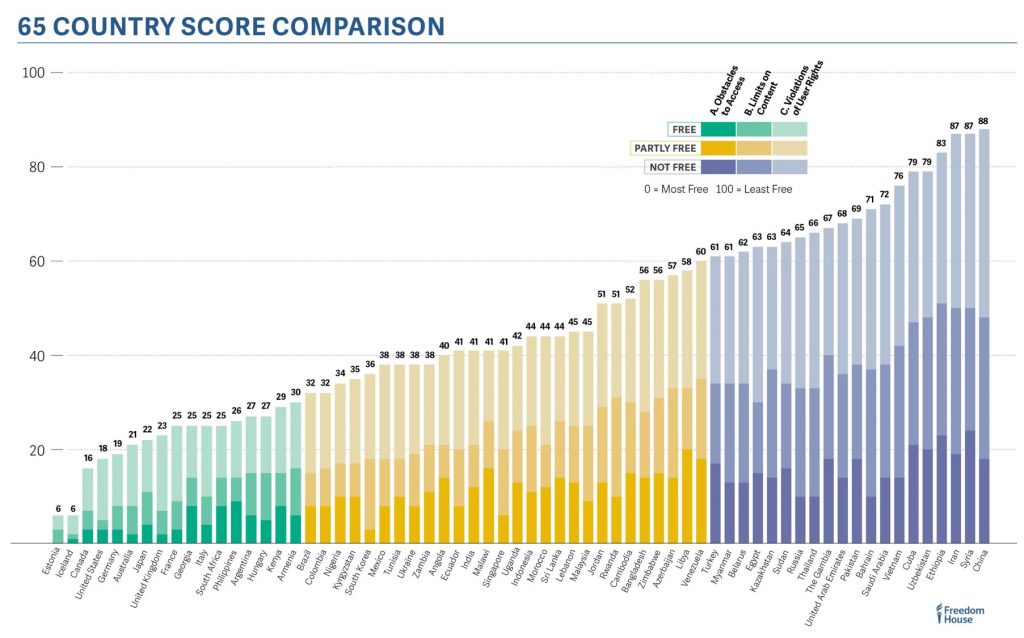 Im Streit um Fake News und den richtigen Umgang mit Hasskommentaren, warnen derzeit Journalisten und Experten, dass von Justizminister Maas vorgeschlagene Netzwerkdurchsetzungsgesetz (NetzDG) werde die Meinungsfreiheit einschränken. Doch wie steht es weltweit um die Freiheit des Internets?