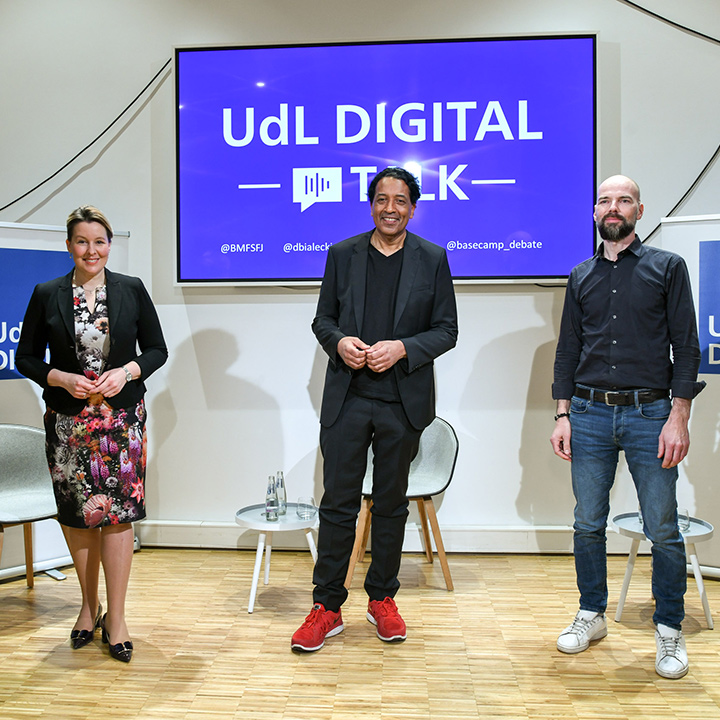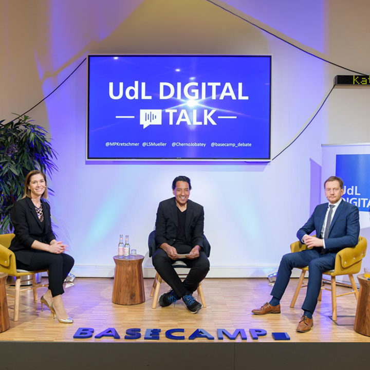 Die letzte Ausgabe vom UdL Digital Talk war so spannend wie nie: Unter dem Titel „Stadt, Land, Fluss: Wie kriegen wir Digitalisierung in die Fläche?“ diskutierten unsere Gäste Michael Kretschmer (Ministerpräsident des Freistaates Sachsen (öffnet in neuem Tab)) und Lena-Sophie Müller (Geschäftsführerin bei Initiative D21 (öffnet in neuem Tab)) an welchen Stellen Deutschland einen digitalen Schub braucht und wie eine erfolgreiche Digitalisierung flächendeckend gelingen kann. Wegen der Corona-Lage haben wir die Runde im BASECAMP (öffnet in neuem Tab)ohne Publikum aufgezeichnet und noch vor dem Jahreswechsel einige Ausschnitte des Gesprächs veröffentlicht (öffnet in neuem Tab), das wie immer von Cherno Jobatey (öffnet in neuem Tab) moderiert wurde. Jetzt teilen wir mit Ihnen die gesamte Show, viel Spaß beim Anschauen!