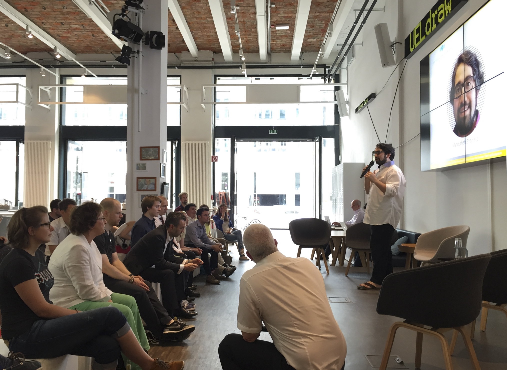 Zum Auftakt der Diskussion skizzierte Key-Note-Sprecher Manouchehr Shamsrizi seine zentralen Ideen, welche gesellschaftlichen Veränderungen durch das Wirken der Startups möglich sind und was auch politisch aus ihrem Handeln erwachsen kann. Insbesondere der gesellschaftspolitische Einfluss junger Unternehmer und Unternehmen sei oft unterdiskutiert und eindimensional betrachtet: „Startups sind eine hervorragende Möglichkeit an der Schraube zu drehen“, sagte Shamsrizi und stellte die These auf, Startups und ihre Geschäftsmodelle hätten das Potential zu einer Verteilungs- und Generationsgerechtigkeit in Deutschland beizutragen. Der demografische Wandel in Deutschland und die daraus resultierenden und bereits jetzt vorherrschenden Probleme sind nach Shamsrizi spannende Themen, die sich als Nischen für Geschäftsmodelle von Startups anbieten. Als Beispiel dafür nannte er etwa das Thema Mobilisierung und ging auch noch einen Schritt weiter: So muss das Ziel sein, „dass wir digitalisiert werden, wo Digitalisierung möglich ist“ und das mit intelligenten Systemen zum Beispiel im Finanz- oder Gesundheitsbereich.