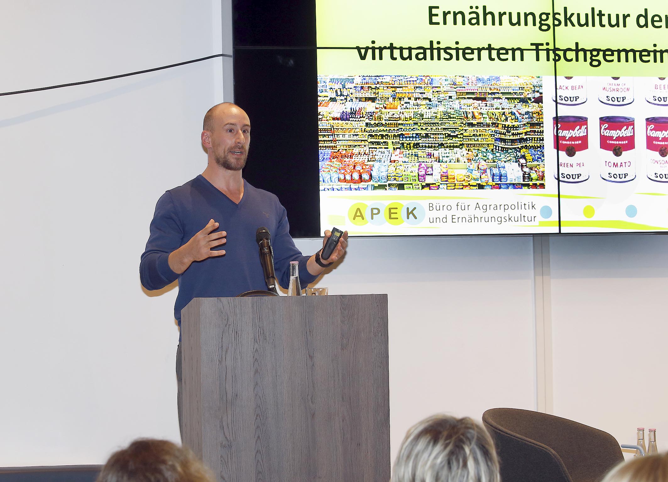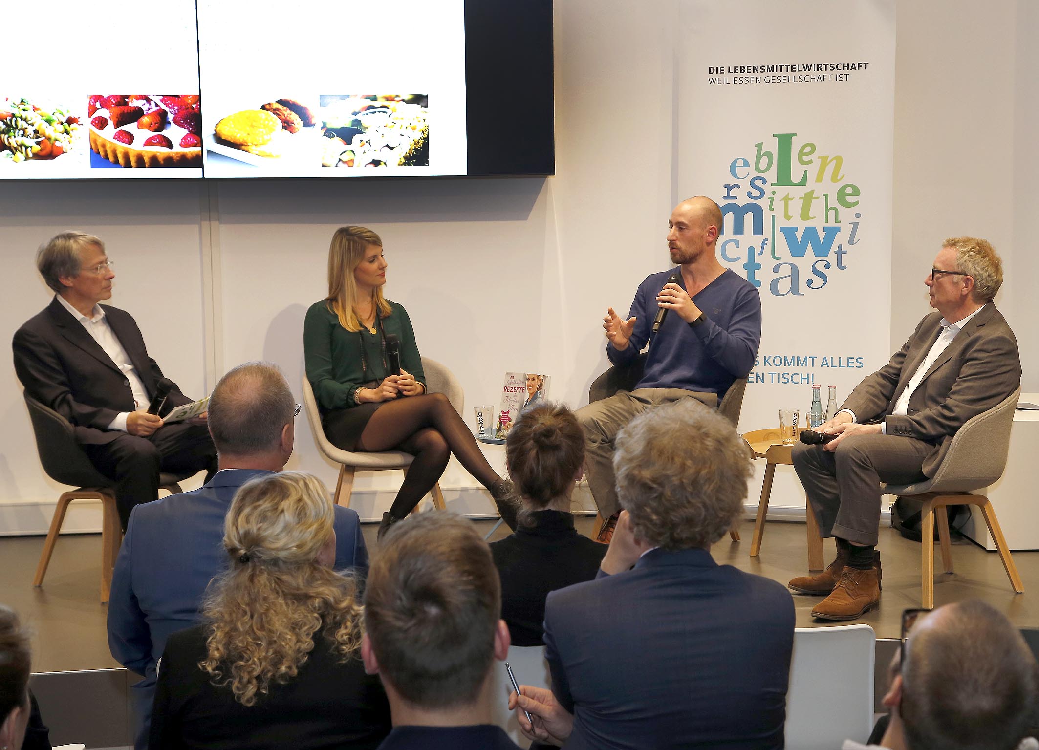 Vor rund 50 Gästen eröffnete Stephan Becker-Sonnenschein, Geschäftsführer von DIE LEBENSMITTELWIRTSCHAFT, die Gesprächsrunde mit einem ebenso appetitlichen wie spannenden aber auch kuriosen Phänomen: Mok-Bang heißt der neueste Trend aus Korea, bei dem man anderen Menschen live beim Essen zusieht. Aber was bringt uns dazu, unser Essen zu fotografieren und ins Netz zu stellen oder solche Fotos und Filme von anderen massenweise anzuschauen? Über diese Fragen diskutierten Prof. Peter Wippermann, Professor für Kommunikationsdesign an der Folkwang Universität der Künste in Essen und Mitglied des Wissenschaftlichen Beirats von DIE LEBENSMITTELWIRTSCHAFT, Dr. Daniel Kofahl, Ernährungssoziologe und Gründer des Büros für Agrarpolitik und Ernährungskultur, und Felicitas Then, Journalistin, Fernsehköchin und Siegerin der Sat1-Koch-Casting-Show „The Taste“ 2013.