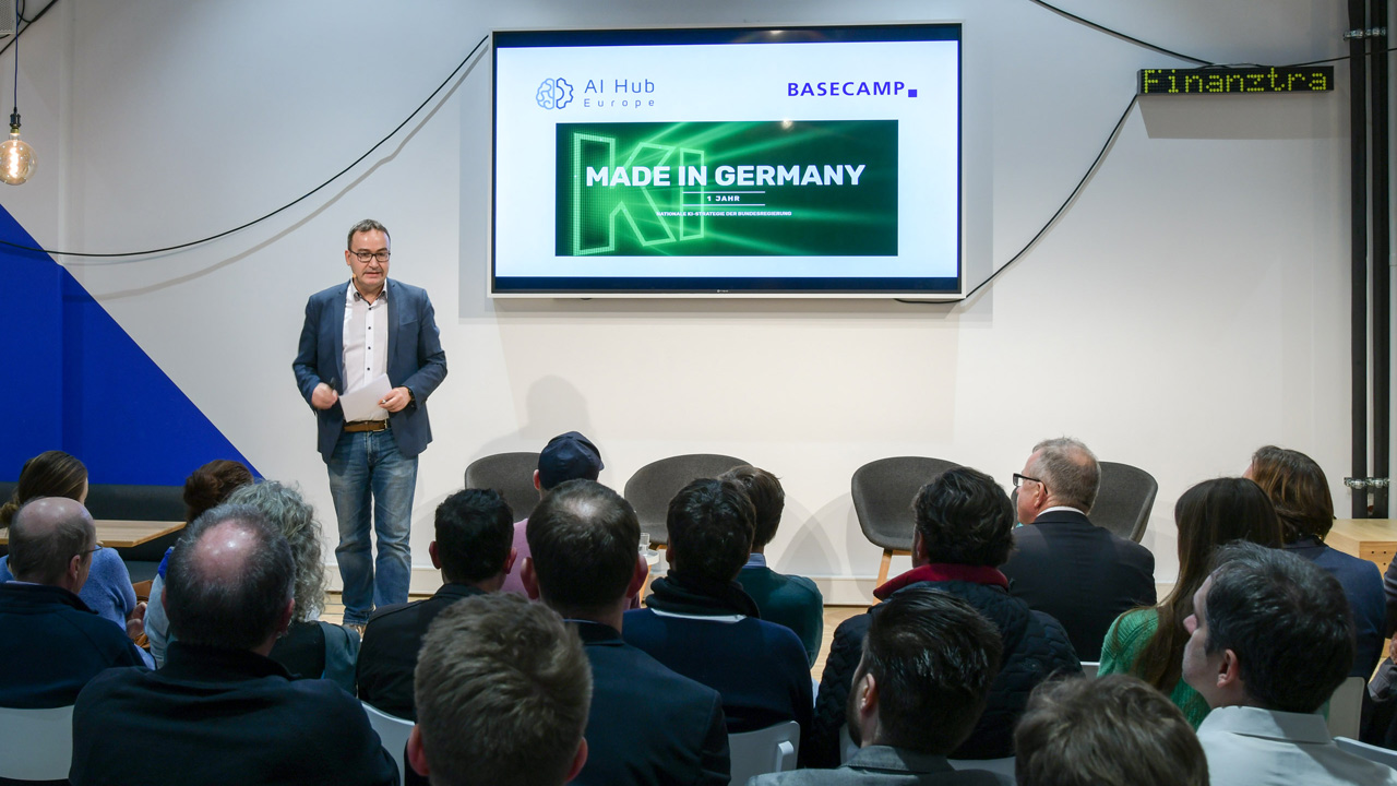 Vor etwas über einem Jahr hat die Bundesregierung ihre KI-Strategie (öffnet in neuem Tab) beschlossen. Was hat sich seitdem getan? Wo besteht der dringlichste Handlungsbedarf? Über diese Fragen diskutierten KI-Experten aus Politik und Wirtschaft am 11. Dezember beim siebten Lunch-Talk von AI-Hub Europe im BASECAMP (öffnet in neuem Tab).
