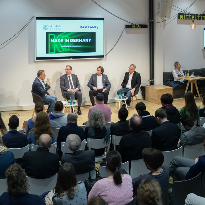 Vor etwas über einem Jahr hat die Bundesregierung ihre KI-Strategie (öffnet in neuem Tab) beschlossen. Was hat sich seitdem getan? Wo besteht der dringlichste Handlungsbedarf? Über diese Fragen diskutierten KI-Experten aus Politik und Wirtschaft am 11. Dezember beim siebten Lunch-Talk von AI-Hub Europe im BASECAMP (öffnet in neuem Tab).