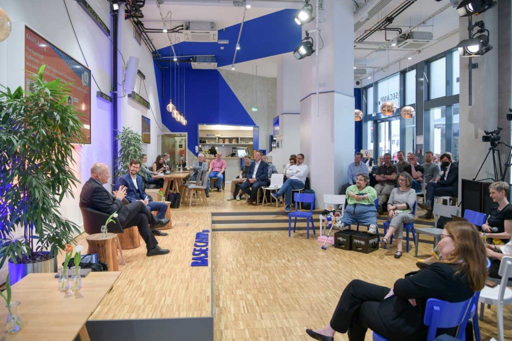 Bereits zum zehnten Mal hat die Reihe „Nachgefragt!“ den Tag interessant eingeleitet, und zwar zu einem Thema, das uns alle angeht, auch im privaten Bereich: Cybersicherheit. Philippe Gröschel, Leiter der Politikabteilung bei Telefónica Deutschland, stellte im Basecamp zur frühen Stunde dem Präsidenten des Bundesamts für Sicherheit in der Informationstechnik (BSI) die Frage: „Hackertruppen und Troll-Armeen: Was müssen wir darüber wissen?“