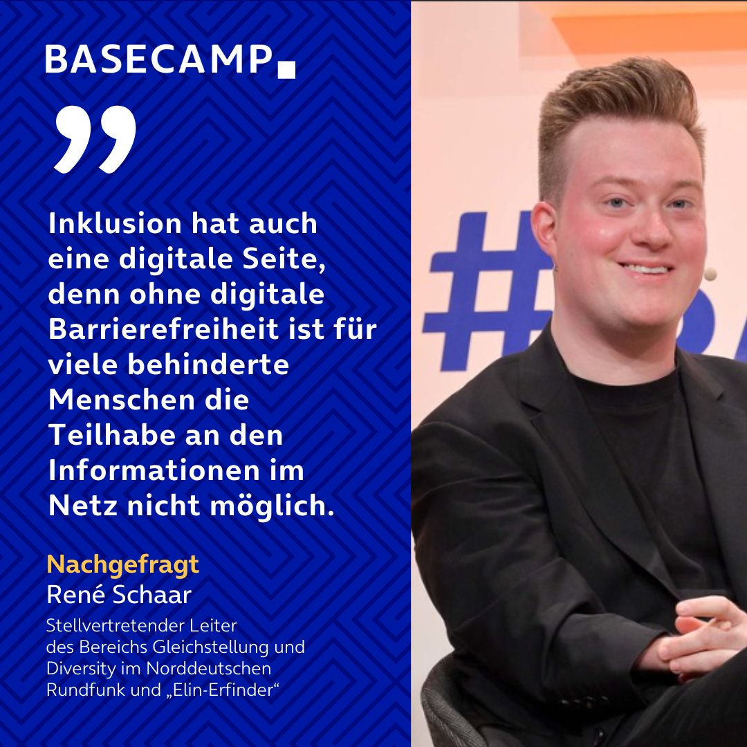 Doch Inklusion meint nicht nur, dass „das Wegsortieren“, so Schaar, von Behinderten Menschen in eigene Schulen, Wohnheime und Werkstätten aufhören müsse. Inklusion hat auch eine digitale Seite, denn ohne digitale Barrierefreiheit ist für viele Behinderte Menschen wie etwa Blinde die Teilhabe an den Informationen im Netz nicht möglich. Im NDR versucht man, diese Barrierefreiheit auch mit Untertiteln, Kommentaren zur Audio-Unterstützung, Gebärdensprachdolmetscher, Nachrichten in langsamer und leichter Sprache auszubauen. Auch „Elin“ soll nicht nur einen einmaligen Auftritt haben, sondern fester Teil der Truppe sein. Wenn die Gesellschaft oder Unternehmen nur an bestimmten Thementagen über Behinderung diskutieren und dann aber nichts umsetzen, um die Hindernisse zu beseitigen, ist es für Schaar „Diversity Washing“ und kein echtes Bemühen.