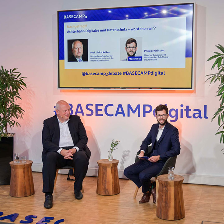 Es schien alles wie immer im BASECAMP in Berlin-Mitte zur morgendlichen Stunde, doch plötzlich, aufgeregte Schreie: Philippe Gröschel, Director Government Relations bei Telefónica Deutschland begrüßte die Gäste zum „Nachgefragt: Achterbahn Digitales und Datenschutz – wo stehen wir?“ mit einer Tonaufnahme einer Achterbahnfahrt und fragte seinen Gesprächspartner Professor Ulrich Kelber, den Bundesbeauftragten für den Datenschutz und die Informationsfreiheit, ob es einen vergleichbaren Adrenalinkick auch beim Datenschutz gebe?