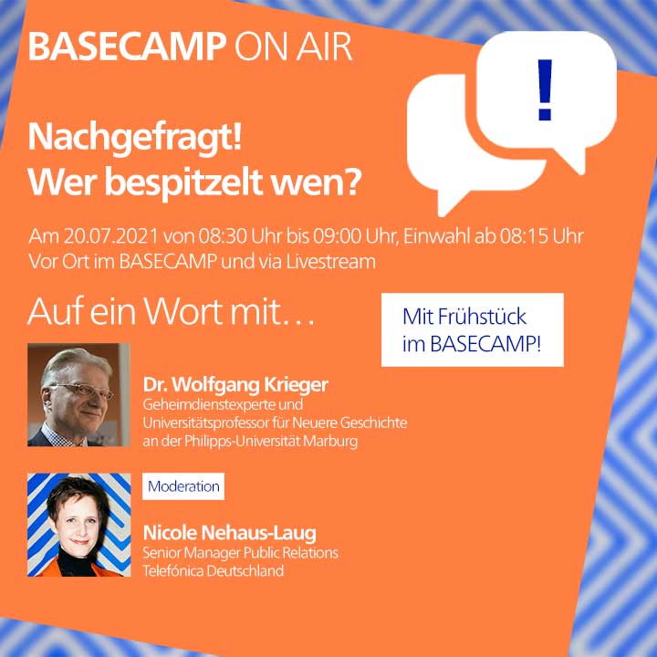 Nicole Nehaus-Laug, Senior Manager Public Relations bei Telefónica Deutschland, führte das Gespräch mit Historiker Prof. Wolfgang Krieger (öffnet in neuem Tab), der sich als Professor an der Philipps-Universität Marburg seit Jahren mit Geheimdiensten beschäftigt und ihr Wirken von den Pharaonen bis heute überblickt.