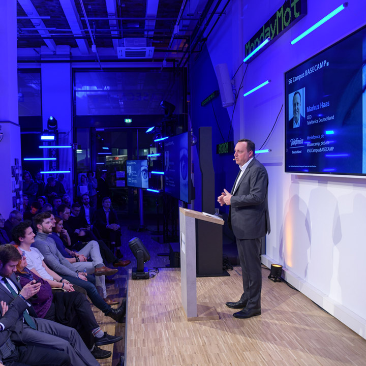Der Telefónica 5G Campus im BASECAMP ist da. Zur Eröffnung am 9. März teilten Telefónica-CEO Markus Haas, Sicherheitsexperte Eugene Kaspersky, BSI-Präsident Arne Schönbohm und Moderatorin Dunja Hayali mit den zahlreichen Gästen ihre Visionen von der Zukunft mit 5G. Es wurden aber auch konkrete 5G-Anwendungen vorgestellt. Denn das ist das Ziel des Campus – 5G erlebbar machen.