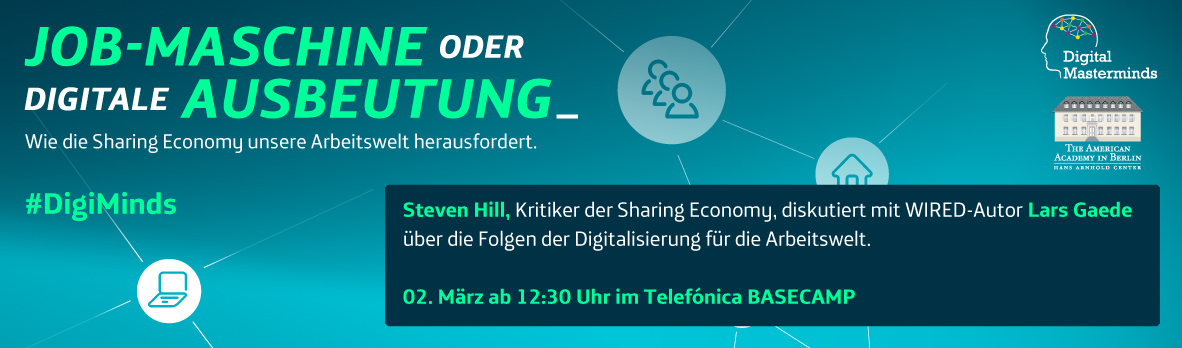 „Über solche Entwicklungen müssen wir genauer nachdenken, statt einfach nur zu sagen: Das ist innovative Technologie und die Regierung soll ihre Finger davon lassen“, mahnt der Journalist und Arbeitsmarktexperte Steven Hill. Die sozialen Folgen der sogenannten Uber Economy sind deshalb auch ein wichtiges Thema im aktuellen US-Präsidentenwahlkampf. Und am nächsten Mittwoch können wir selbst darüber mit Steven Hill im Telefónica BASEAMP diskutieren. Also gleich anmelden (öffnet in neuem Tab)!