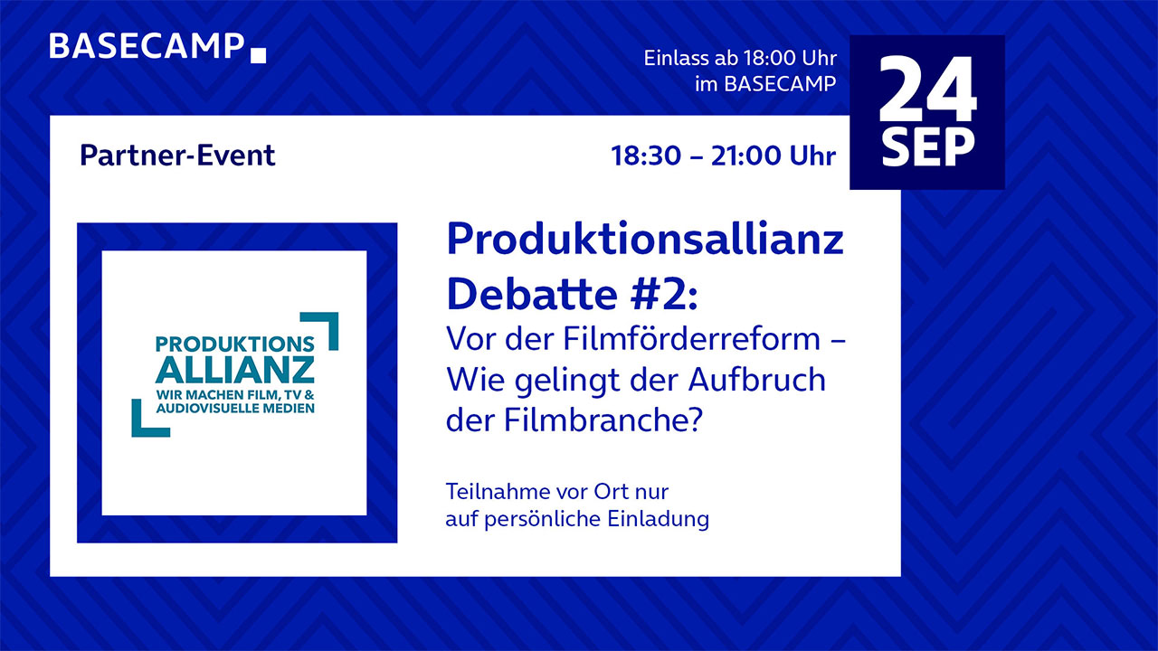 24. Sep. 2024 EVENT Produktionsallianz Debatte #2: Vor der Filmförderreform – Wie gelingt der Aufbruch der Filmbranche?