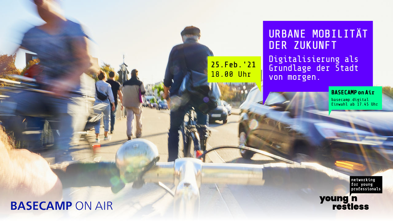 25. Feb. 2021 5G | BASECAMP ON AIR | Digitale Zukunft BASECAMP ON AIR | Young+Restless: Urbane Mobilität der Zukunft – Digitalisierung als Grundlage der Stadt von morgen