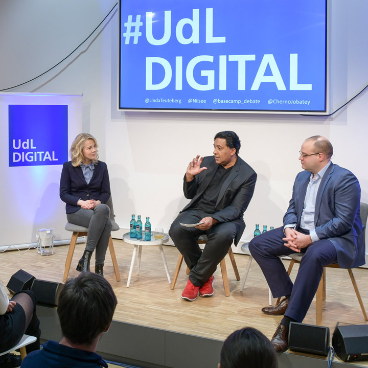 Die digitale Transformation stößt mitunter auf Ablehnung. Bedroht sie den eigenen Beruf? Schaden 5G-Sendemasten der Gesundheit? Unter dem Titel „Digital first, Bedenken second. Wieviel Digitalisierung verträgt Deutschland?“ diskutierten am 10. Dezember 2019 Linda Teuteberg (öffnet in neuem Tab), FDP-Bundestagsabgeordnete und seit April 2019 Generalsekretärin ihrer Partei, und Nils Seebach (öffnet in neuem Tab), digitaler Unternehmer und Autor des Blogs Digitalkaufmann.de (öffnet in neuem Tab), beim UdL Digital Talk im BASECAMP (öffnet in neuem Tab). Einig waren sie sich darin, dass sich durch die Digitalisierung viele Chancen ergeben, die in Diskussionen oft zu kurz kämen. Moderiert wurde der Talk von Fernsehmoderator Cherno Jobatey.
