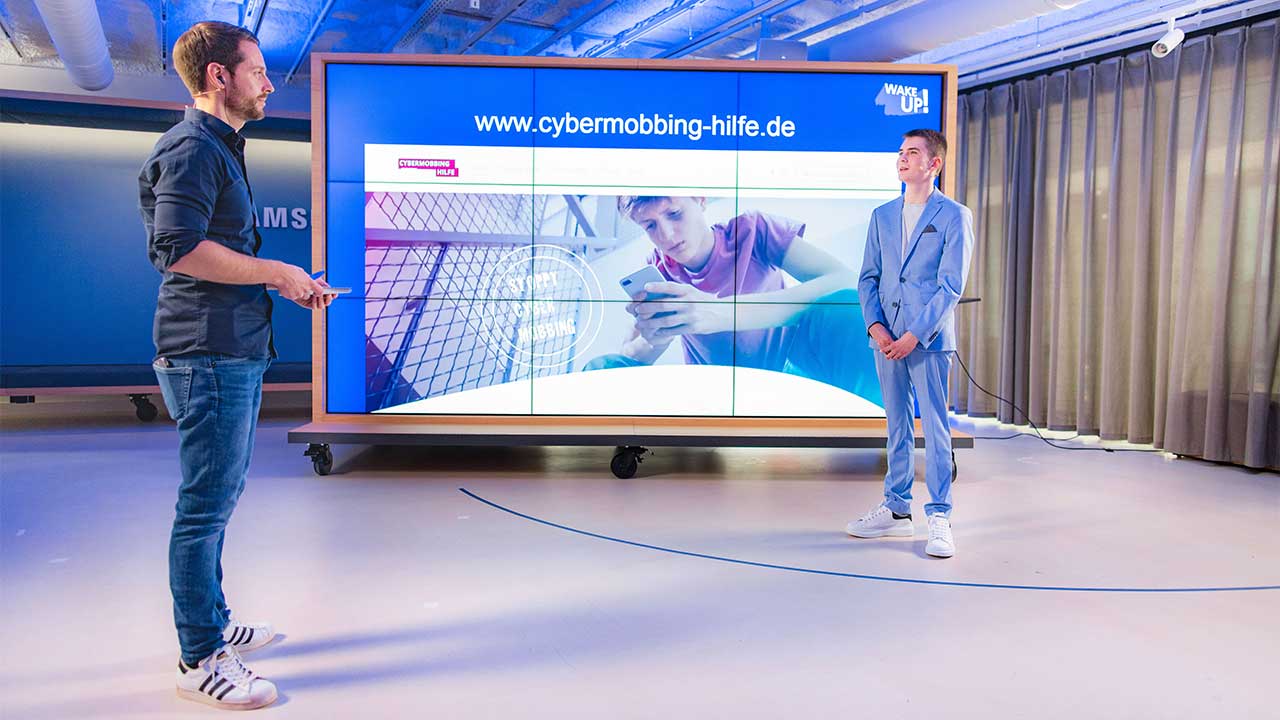 Zu Beginn wurden die Schüler*innen in Live-Umfragen von den Schauspieler*innen Amelie May und Maximilian Braun, die in der WAKE UP! Webserie (öffnet in neuem Tab) Mina und Tom darstellen, zu ihren Kenntnissen rund um Cybermobbing befragt. Anschließend ging es in den Klassen mit Fallbeispielen weiter, die gemeinsam mit dem FSM und der Agentur für Bildungskommunikation YAEZ als digitale Lernformate, sogenannte eduStories konzipiert wurden. Anhand verschiedener Beispiele kann dabei geübt werden, wie man sich in den jeweiligen Fällen am besten zu verhalten hat. In der Webserie, die ebenfalls mit dem FSM entworfen wurde und in der Lukas Pohland als Experte erklärend mitwirkt, geht es in sechs Folgen um Tipps und Tricks, was bei Cybermobbing zu tun ist, ob man nun selbst davon betroffen ist oder Betroffene unterstützen möchte.